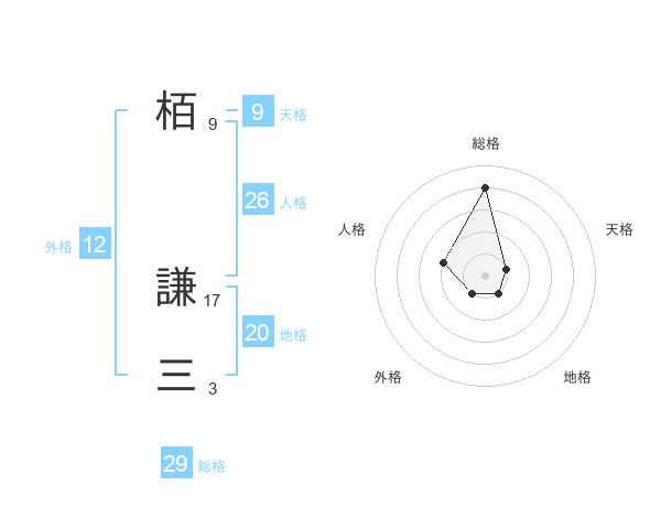 栢 謙三さんの総格は29画の4点!