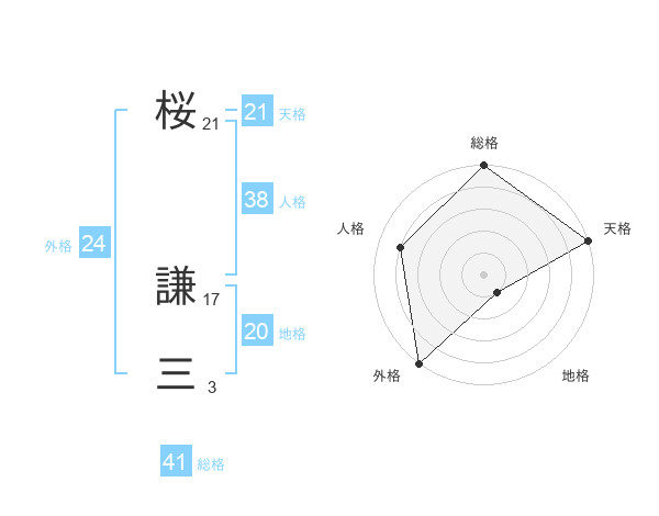 桜 謙三さんの天格は21画の5点!