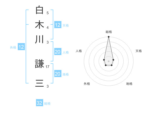 白木川 謙三さんの総格は32画の5点