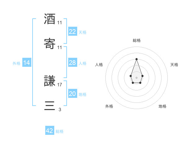 酒寄 謙三さんの外格は14画の1点!