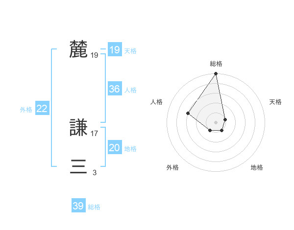 麓 謙三さんの総格は39画の5点!