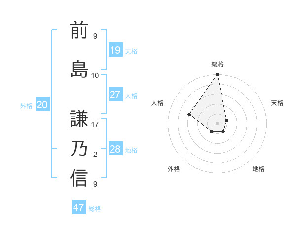 前島 謙乃信さんの総格は47画の5点!