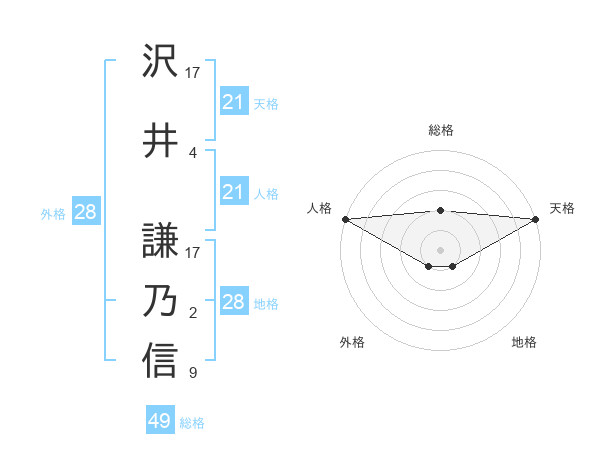 沢井 謙乃信さんを姓名の画数から五運を鑑定