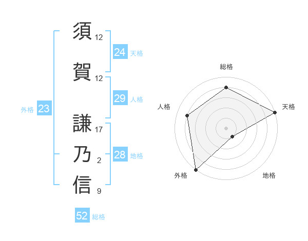 須賀 謙乃信さんを姓名の画数から五運を鑑定