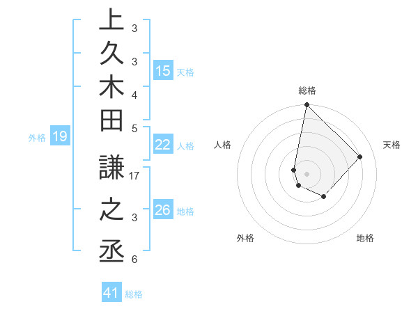上久木田 謙之丞さんを姓名の画数から五運を鑑定