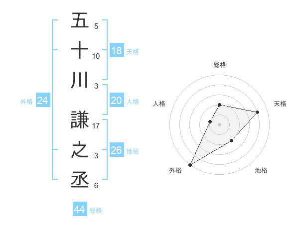 五十川 謙之丞さんを姓名の画数から五運を鑑定