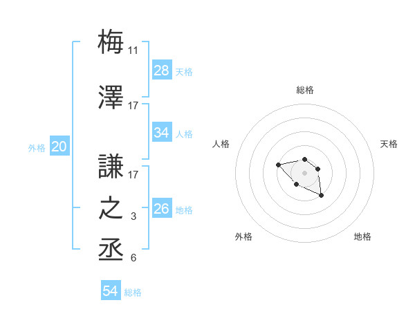 梅澤 謙之丞さんを姓名の画数から五運を鑑定