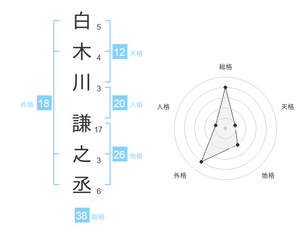 白木川 謙之丞さんを姓名の画数から五運を鑑定