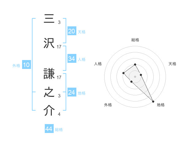 三沢 謙之介さんの総格は44画の2点!