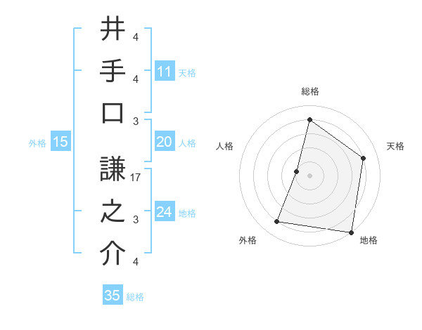 井手口 謙之介さんを姓名の画数から五運を鑑定
