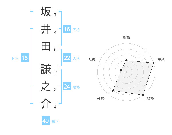 坂井田 謙之介さんを姓名の画数から五運を鑑定