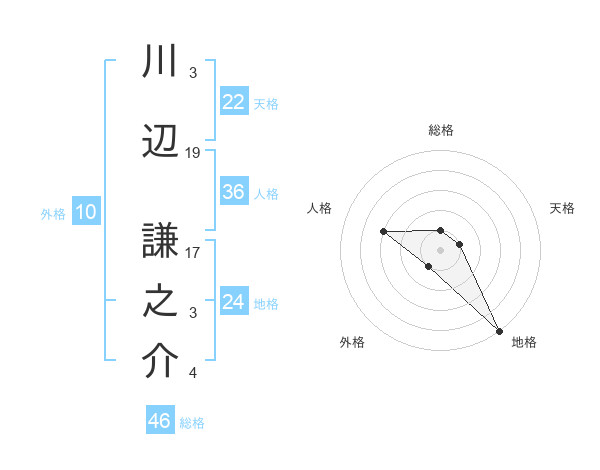 川辺 謙之介さんを姓名の画数から五運を鑑定