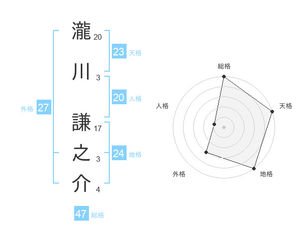 瀧川 謙之介さんを姓名の画数から五運を鑑定