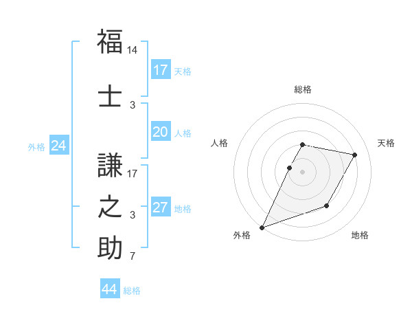 福士 謙之助さんを姓名の画数から五運を鑑定
