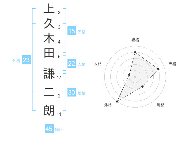 上久木田 謙二朗さんを姓名の画数から五運を鑑定