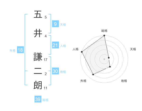 五井 謙二朗さんを姓名の画数から五運を鑑定