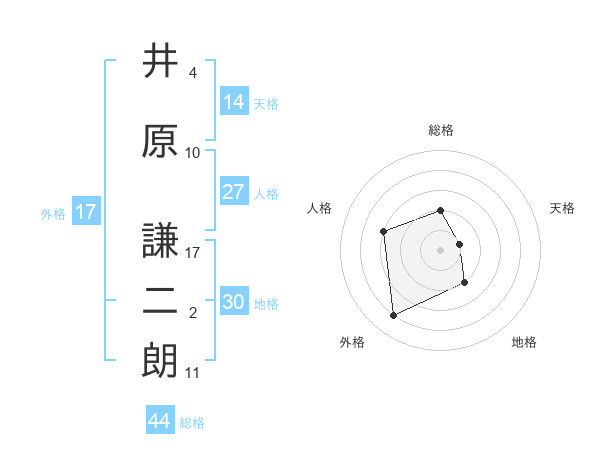 井原 謙二朗さんを姓名の画数から五運を鑑定