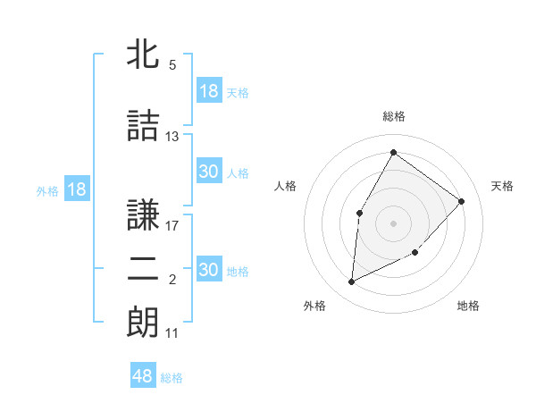 北詰 謙二朗さんを姓名の画数から五運を鑑定