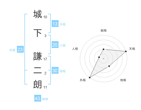 城下 謙二朗さんを姓名の画数から五運を鑑定