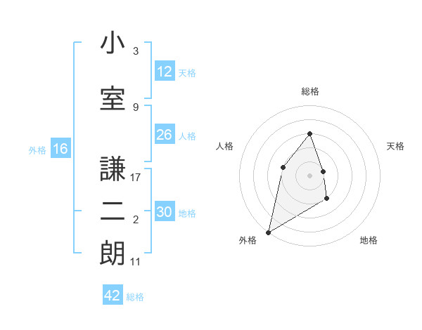 小室 謙二朗さんを姓名の画数から五運を鑑定