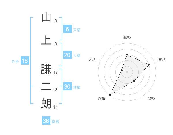山上 謙二朗さんの天格は6画の4点!