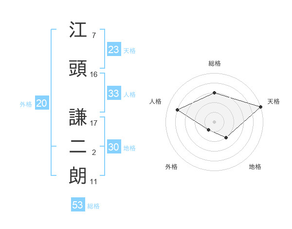 江頭 謙二朗さんの総格は53画の3点!
