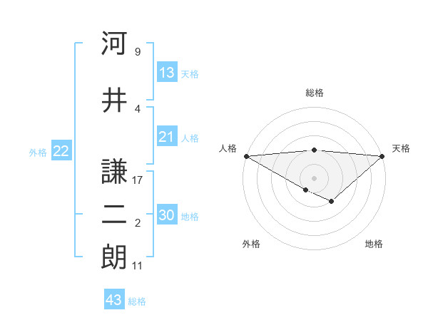 河井 謙二朗さんを姓名の画数から五運を鑑定