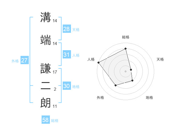 溝端 謙二朗さんの総格は58画の4点!