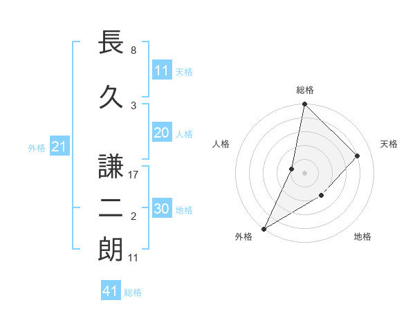 長久 謙二朗さんを姓名の画数から五運を鑑定