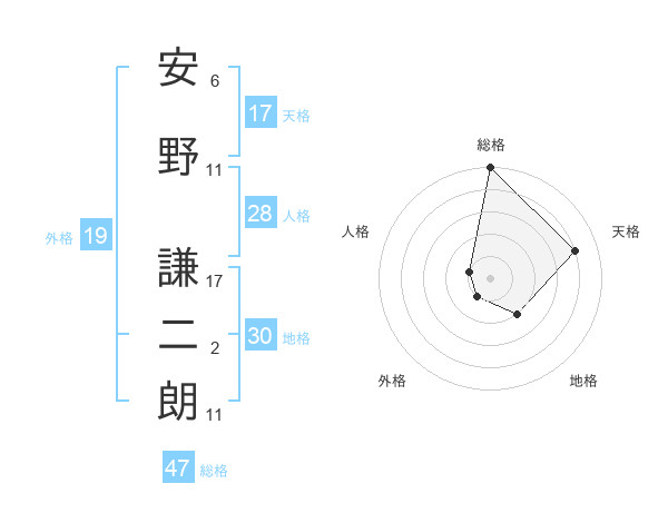 安野 謙二朗さんを姓名の画数から五運を鑑定