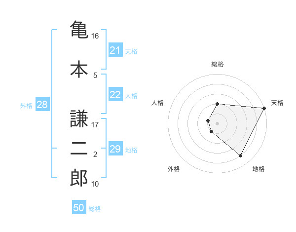 亀本 謙二郎さんを姓名の画数から五運を鑑定