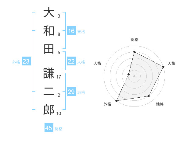 大和田 謙二郎さんの外格は23画の5点!