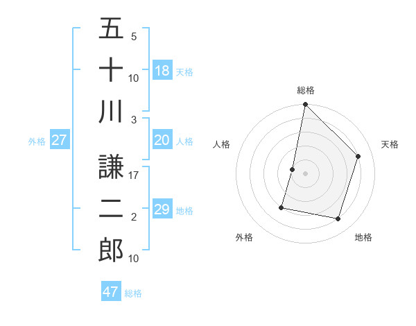 五十川 謙二郎さんの総格は47画の5点!