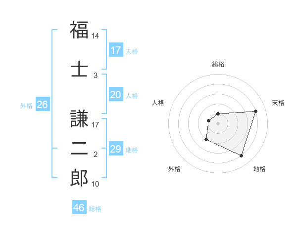福士 謙二郎さんを姓名の画数から五運を鑑定