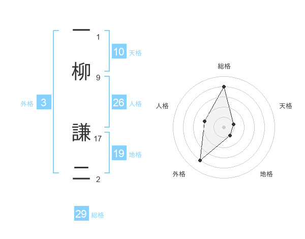 一柳 謙二さんを姓名の画数から五運を鑑定