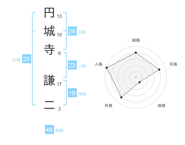 円城寺 謙二さんの天格は29画の4点!