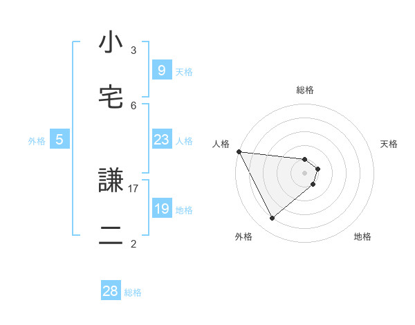 小宅 謙二さんを姓名の画数から五運を鑑定
