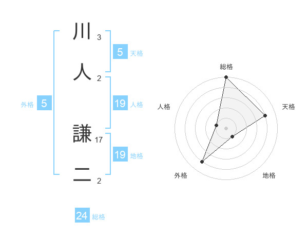 川人 謙二さんの天格は5画の4点!