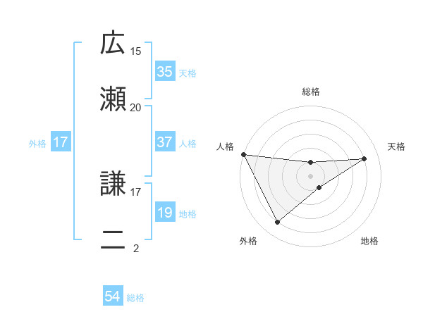 広瀬 謙二さんを姓名の画数から五運を鑑定