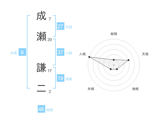 成瀬 謙二さんを姓名の画数から五運を鑑定