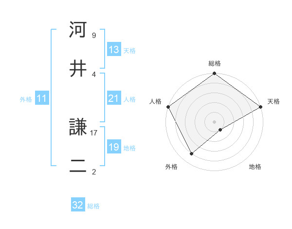 河井 謙二さんの総格は32画の5点!