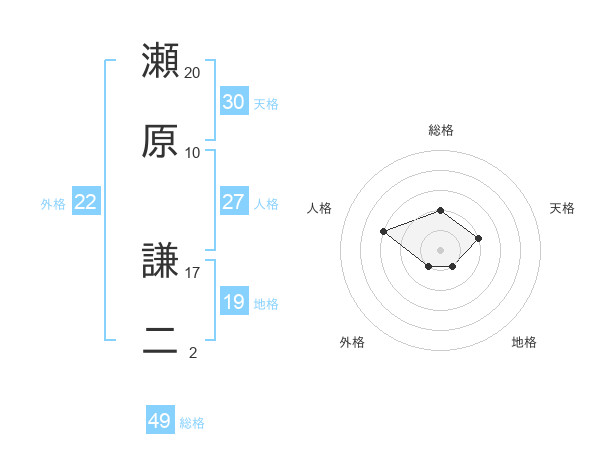 瀬原 謙二さんの総格は49画の2点!