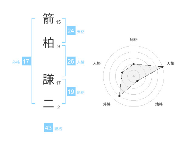 箭柏 謙二さんの天格は24画の5点!