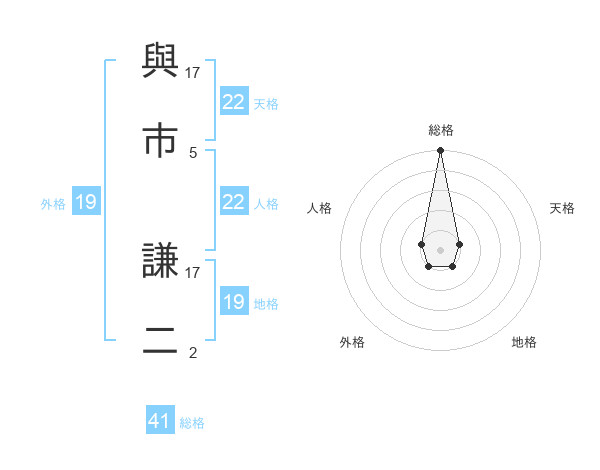 與市 謙二さんの天格は22画の1点!
