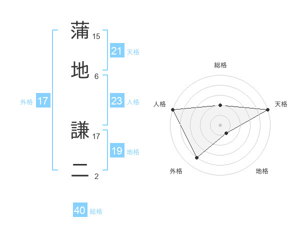 蒲地 謙二さんを姓名の画数から五運を鑑定