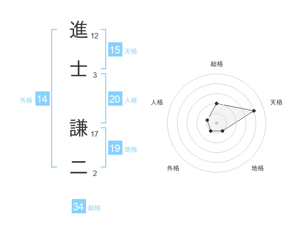 進士 謙二さんの総格は34画の2点!