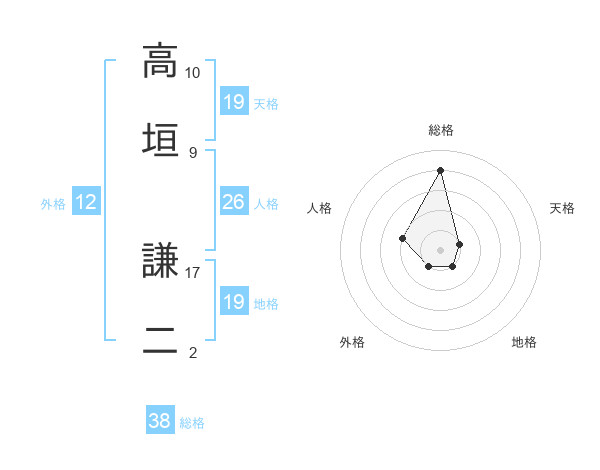 高垣 謙二さんの天格は19画の1点!