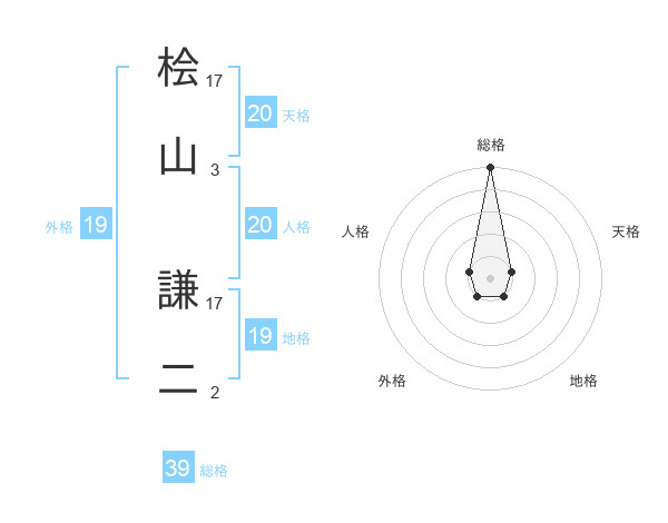 桧山 謙二さんを姓名の画数から五運を鑑定