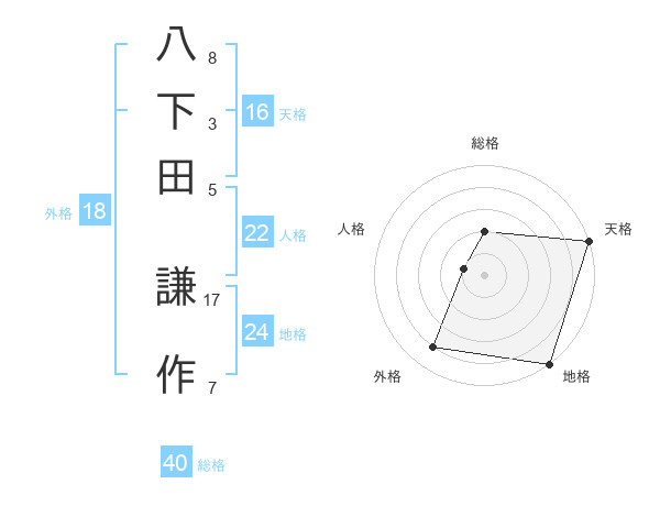 八下田 謙作さんを姓名の画数から五運を鑑定