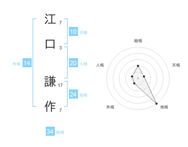 江口 謙作さんの総格は34画の2点!